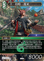 正: 古•拉哈•提亚从手牌进场时,公开你的卡组上方的5张卡牌,以任意顺序置于卡组最下方。随后,如果公开的卡牌包含3种或更多属性,取2张卡牌。如果包含5种或更多属性,追加在本回合,你下次招唤卡牌所需的消耗减4。如果包含8种或更多属性,追加将对手控制的所有角色和对手损毁区中的所有卡牌从游戏中移除。